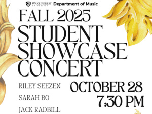 Join WFU Music for our Fall 2025 Student Showcase Concert featuring student soloists and chamber music.
