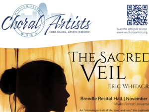 Prominent international choral composer Eric Whitacre's The Sacred Veil will be performed by the fully professional Winston-Salem Choral Artists under the direction of WFU Assistant Professor and Director of Choral Activities Dr. Christopher Gilliam, with Grace Anderson, solo cellist, and Dr. Robert Matthews, pianist.