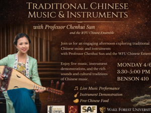 Join us for an engaging afternoon exploring traditional Chinese music and instruments with Professor Chenhui Sun and the WFU Chinese Ensemble.